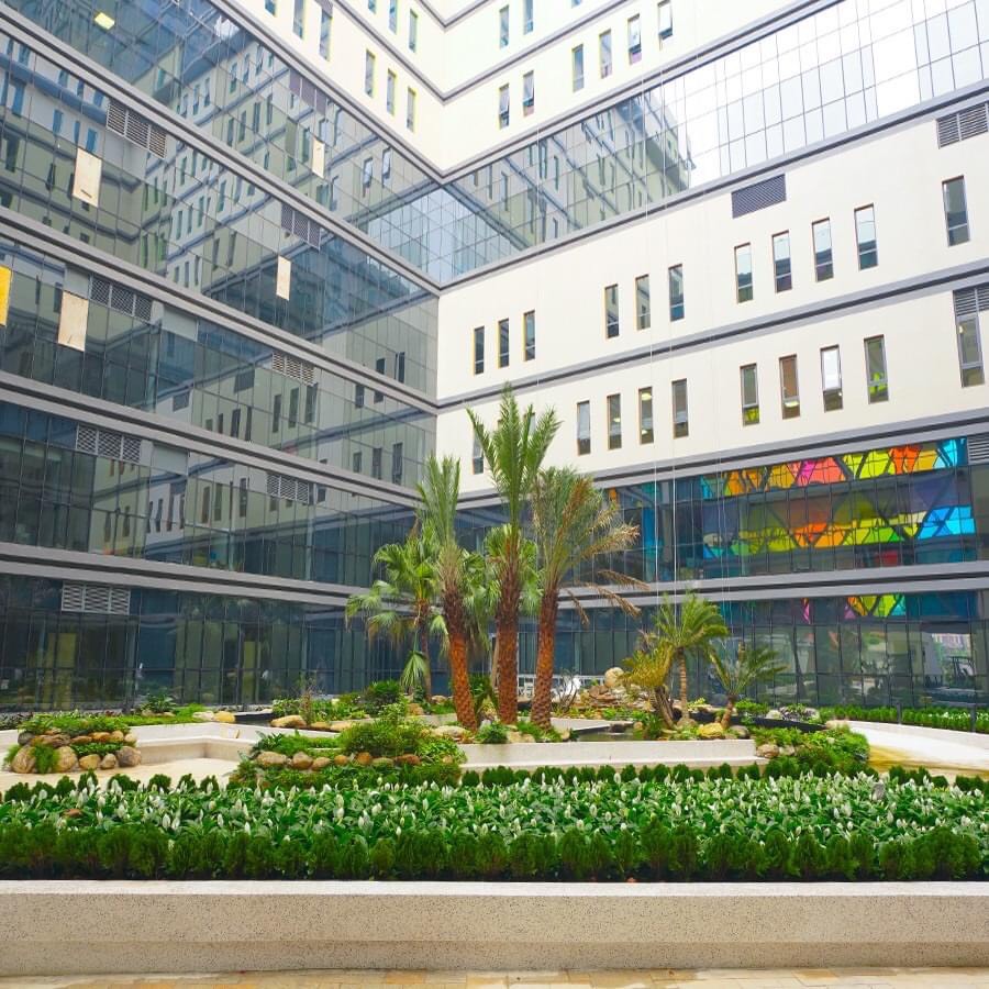 DỰ ÁN: BỆNH VIỆN HỒNG NGỌC – TRƯỜNG PHÚC MINH AD: Số 4 Châu Văn Liêm, P. Phú Đô, Q. Nam Từ Liêm, Hà Nội Hạng mục: Cung cấp và thi công bê tông đá rửa cho cảnh quan. Area: 2000m2 Tổng thể dự án
