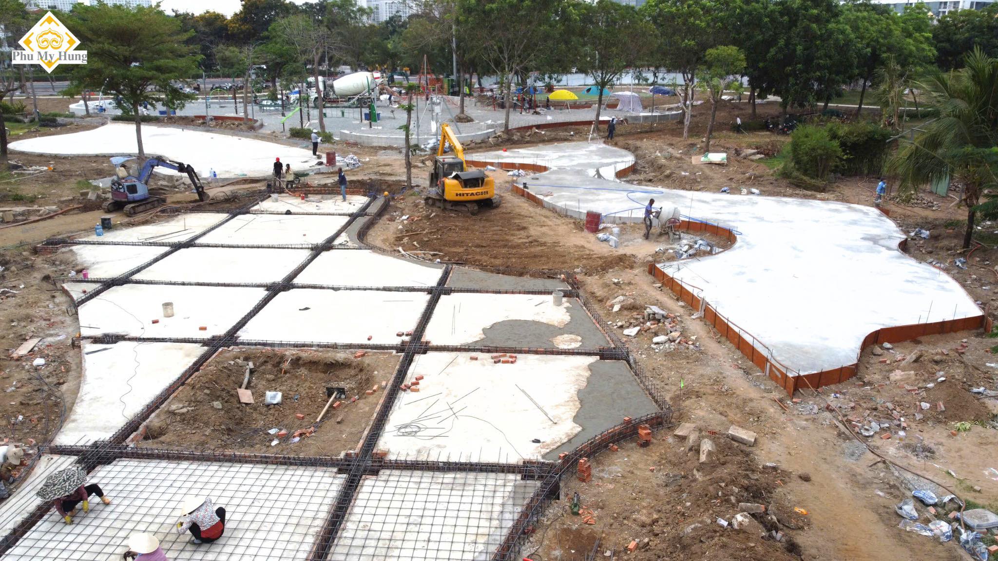 Hạng mục: Cung cấp và thi công Bê tông sỏi rửa cho sàn, Terrazzo cho bồn hoa Dự án: Cải tạo công viên khu P2 Phú Mỹ Hưng Địa điểm thi công: Phường Tân Phong, Quận 7, Thành Phố Hồ Chí Minh.