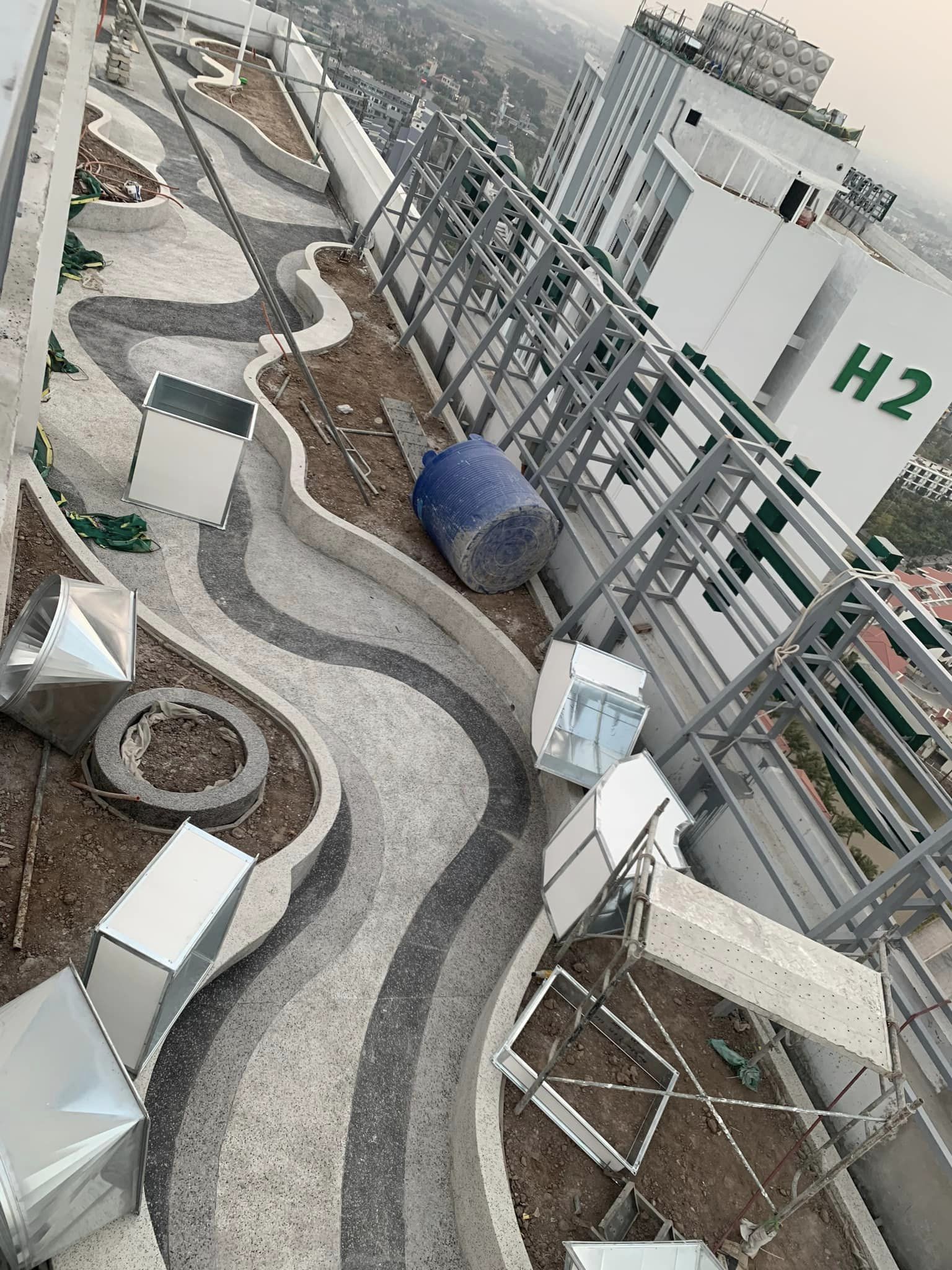 Dự án: Tháp Đôi Light House – Ecoriver Hải Dương Tổng thầu: Công Ty CP Tập Đoàn GDC Thầu phụ: Bê Tông Trang Trí BM Cung cấp thi công bê tông sỏi rửa, đá mài granito cho cảnh quan hạ tầng. Diện tích: 5000 m2