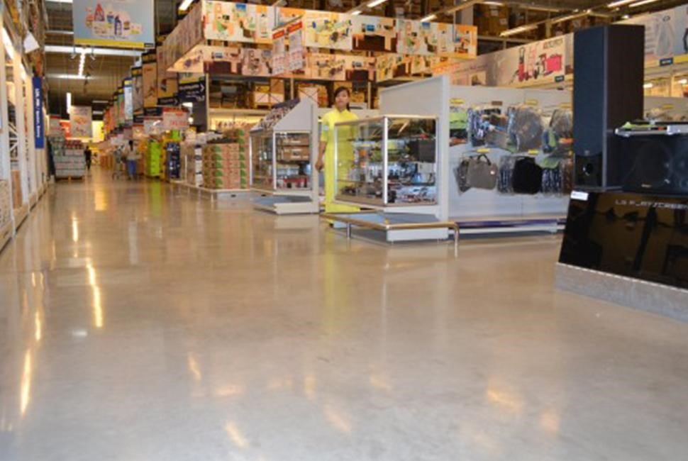 Các vết bánh xe trở nên dễ lau chùi khi sử dụng mặt sàn bê tông mài